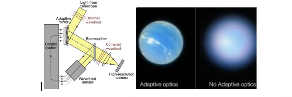 Adaptive Optics has become an even more important technology with the increase of the diameter of the telescope. AO uses wavefront sensing to measure wavefront distortions at specific altitude and a deformable mirror to compensate for those distortions; a computer is processing the measured wavefront and controls a deformable mirror.