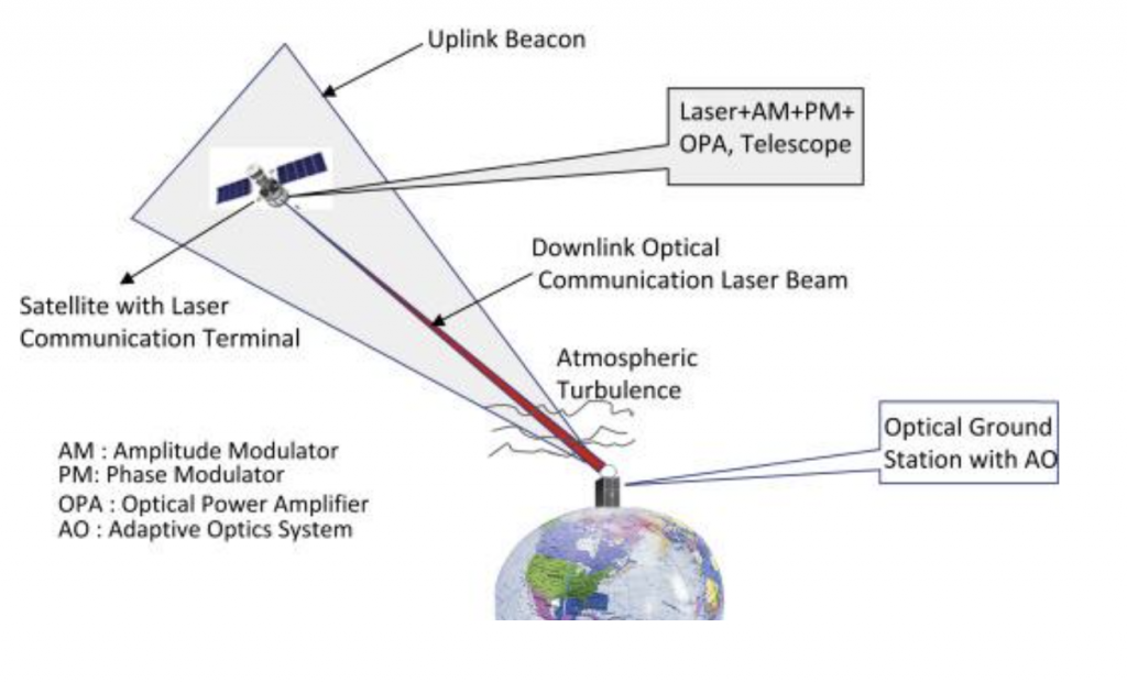 Today, we must explore new methods of communication due to the saturation of RF frequency bandwidth. Additionally, RF signals are broadband, making satellite-transmitted information easier to intercept compared to laser optical systems, which can precisely target a station and transmit data in a highly secure way, making them ideal for military security applications. Another advantage of optical waves is their ability to achieve extremely high data rates, up to 100 Gb/s, when paired with adaptive optics. However, to decode the information, it’s crucial to inject the laser light into a single-mode fiber.