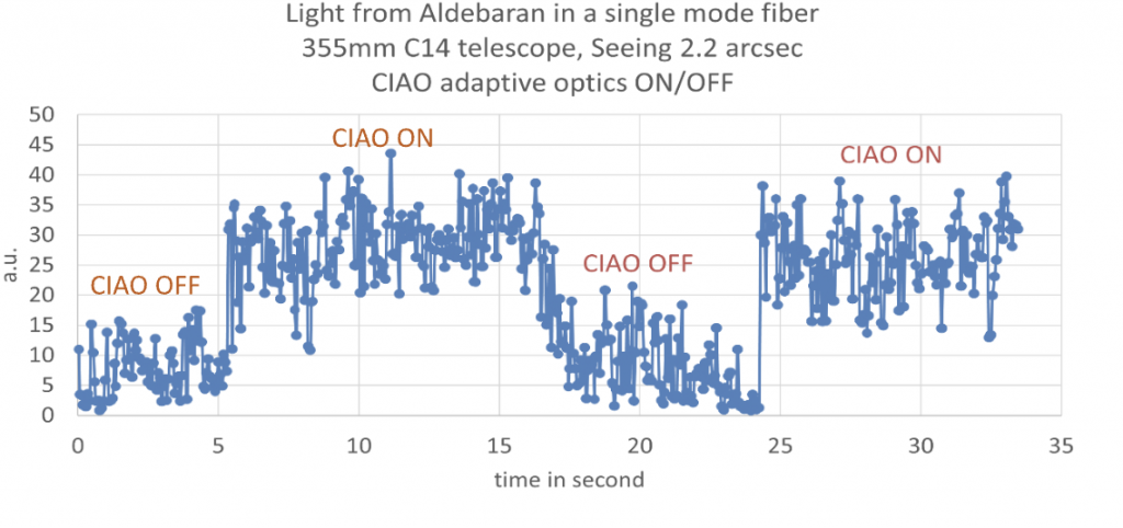 AO allows for improved resolution of telescopes and is now available for amateur and professionals. It can increase performance for interferometry or spectrometry, for example within the framework of the ESO project STELLIM designed to take advantage of the Very Large Telescope interferometer (VLTI) infrastructure. The STELLIM interferometer’s goal is to provide reliable imaging of the surface of cool evolved stars by combining the light of 13 telescopes in the visible. It uses optical fibers to carry the light to the VLTI delay line tunnels. Coupled with a considerable gain in terms of fabrication and cost, the use of CIAO on this project made it possible to benefit from the performance of adaptive optics to optimize the injection of light from telescopes into the fibers.