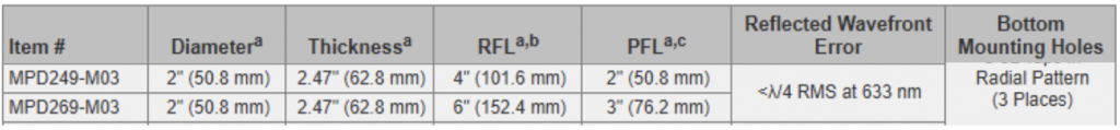 - A reference mirror, here a lambda/20 PV (from Edmund Optics)