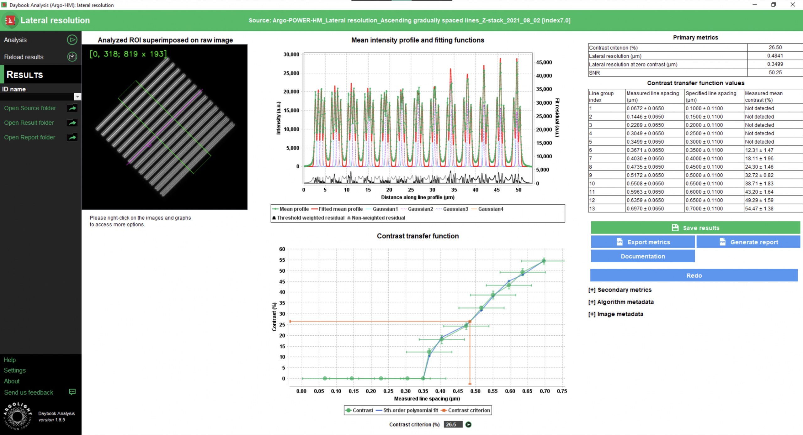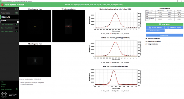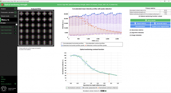 Daybook software allows to analyze and extract data (maps, graphs and metrics) from images of the patterns, in order to control significant parameters of your fluorescence imaging system.