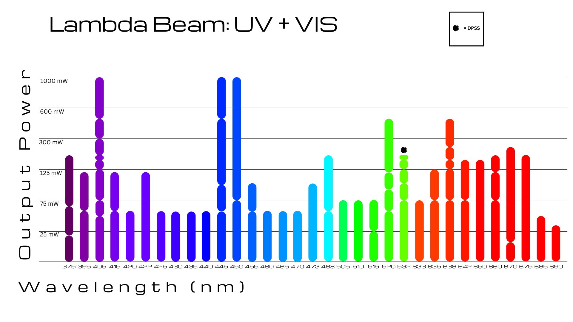 - Broad selection of wavelengths, fine-tunable