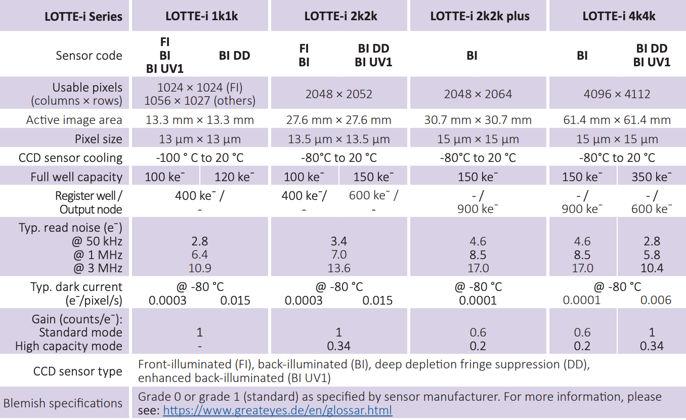 | Readout Modes | 2 output nodes for 1k1k & 2k2k, 4 output nodes for 2k2k plus & 4k4k cameras |