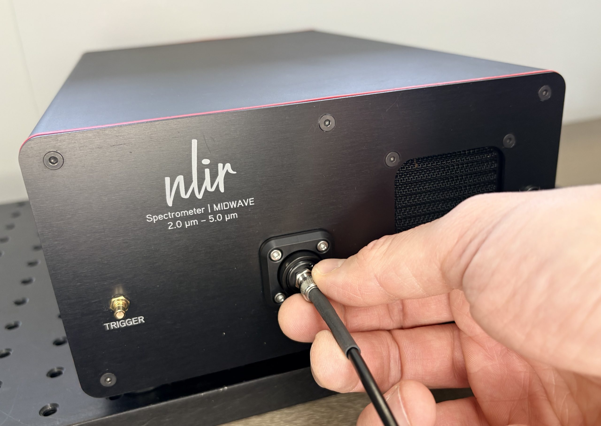 While other Mid-IR spectrometer technologies such as FTIR can achieve very high resolution and spectral coverage, they are simply not fast enough for all applications. NLIR MIDWAVE spectrometers utilize a nonlinear optical process to convert IR light into visible or near-IR light which can be detected with very sensitive, lower-noise, and fast detectors, breaking the speed limits set by, for example, interferometric approaches. While the standard MIDWAVE spectrometer can reach full spectra readout rates of 400 Hz, speeds of up to 130kHz can be reached using this technology.